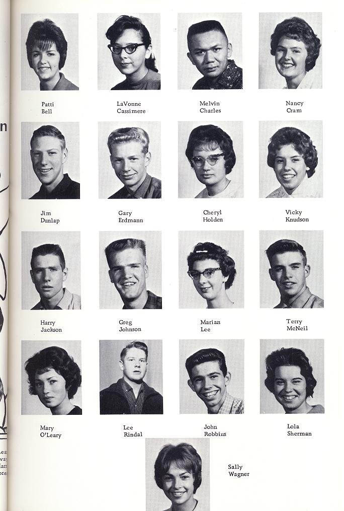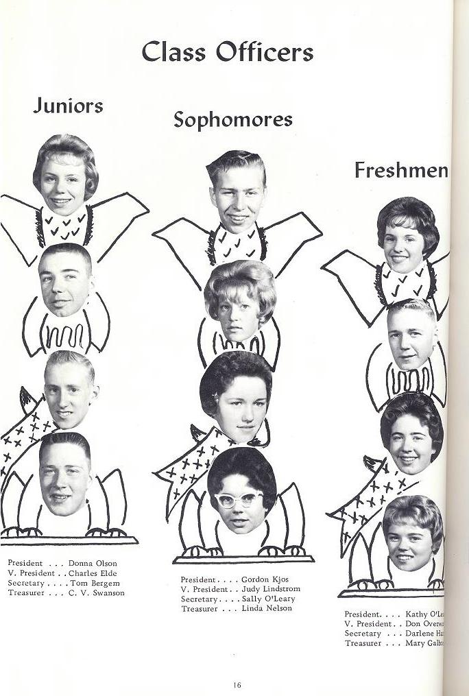 Donna Olson, Charles Elde, Tom Bergem, C.V. Swanson, Gordon Kjos, Judy Lindstrom, Sally O'Leary, Linda Nelson, Kathy O'Leary, Don Overway, Darlene Harris, Mary Galbreath, Patti Bell, LaVanne Cassimere, Melvin Charles, Nancy Cram, Jim Dunlap, Gary Erdmann, Cheryl Holden, Vicky Knudson, Harry Jackson, Greg Johnson, Marian Lee, Terry McNeil, Mary O'Leary, Lee Rindal, John Robbins, Lola Sherman, Sally Wagner