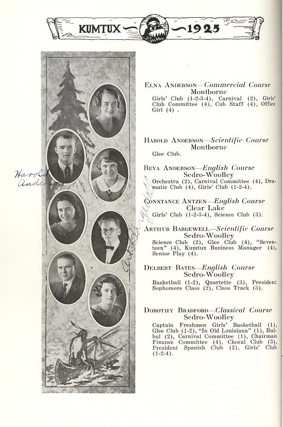 Elna Anderson, Harold Anderson, Reva Anderson, Constance Antzen, Arthur Bargewell, Delbert Bates, Dorothy Bradford, Max Burlingame, Ruth Byham, Frances Cannon, Charlotte Carr, Evelyn Carroll, Grace Catherwood, Hazel Catherwood