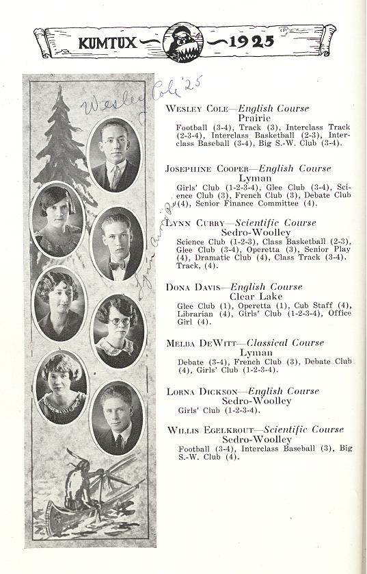 Wesley Cole, Josephine Cooper, Lynn Curry, Dona Davis, Melba DeWitt, Lorna Dickson, Willis Egelkrout, Clara Elbert, Jospehine Elofson, Orville Fields, Philinda Frisk, Alma Frisell, Edgar Gates, Nellie Gates