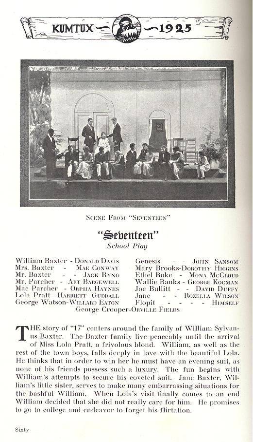 Donald Davis, Mae Conway, Jack Ryno, Art Bargewell, Orpha Haynes, Harriett Guddall, Willard Eaton, Orville Fields, Rozella Wilson, David Duffy, Mona McCloud, Dorothy Higgins, John Sansom, John Sansom, Thelma Stendal, George Kockman, Lynn Curry, Arthur Bargewell, Clara Elbert, Virgie McKain, Jack Ryno, Orville Fields, Charles Johnson, Neale Wrlight, Edgar Gates